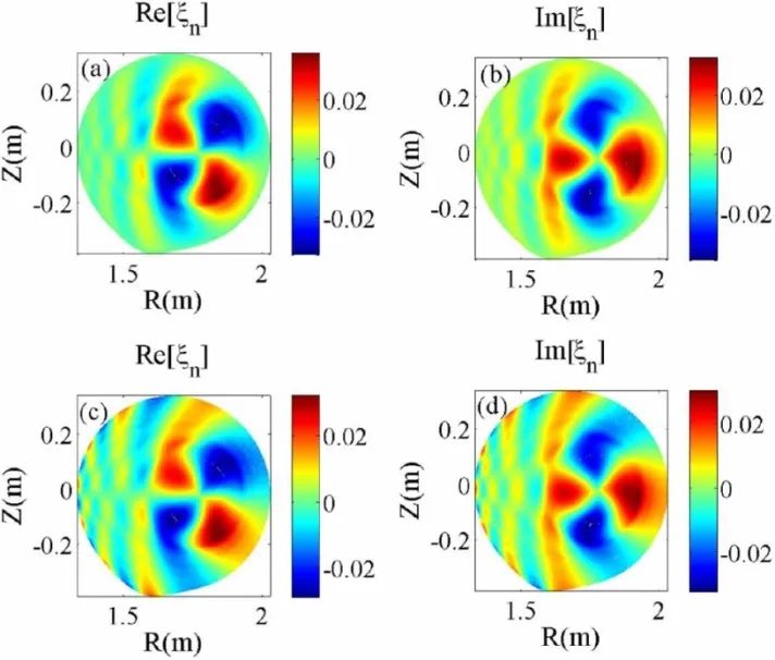在对其他关键物理参数研究的过程中发现,捕获高能量粒子的分布(各向异性或各向同性)对模式的增长率有非常显著的影响,在一定范围内增加粒子螺旋角会使模式的增长率发生明显的下降。改变高能量粒子的初始能量则会引起模式从动理学扭曲模向环向阿尔芬本征模的转变。