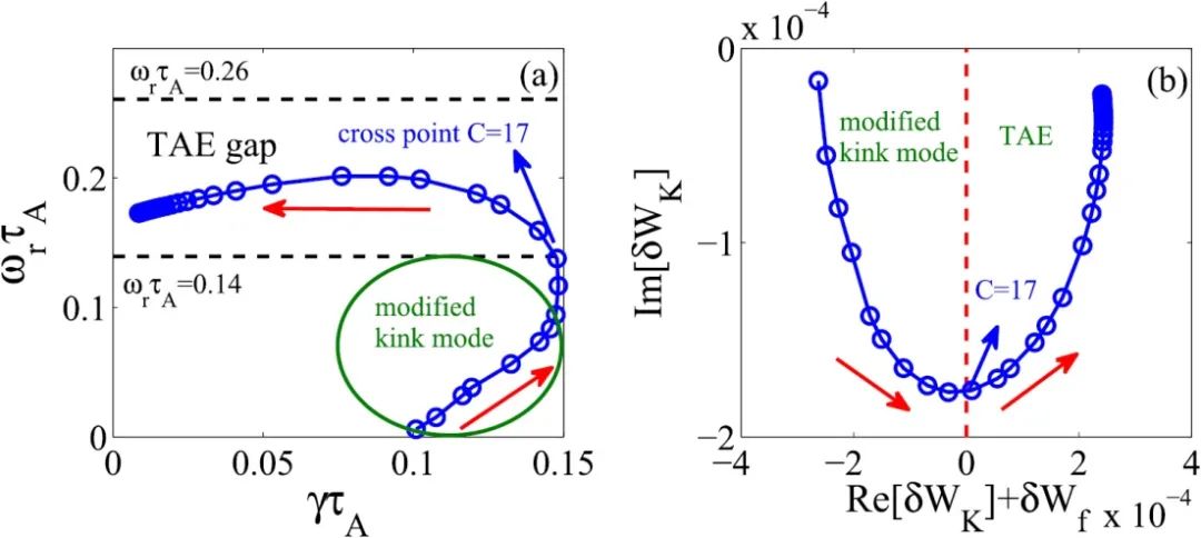 环向阿尔芬本征模(TAE)是一种只能存在于阿尔芬连续谱gap中的宏观磁流体模式,该模式是阿尔芬波相邻极向谐波之间由于环效应耦合形成。由于不受连续性阻尼的影响,TAE不稳定性很容易由辅助加热手段,如中性束注入(NBI)、离子回旋共振(ICRH)产生的快粒子和聚变产生的离子激发。这种大尺度宏观磁流体不稳定性的爆发会引起快粒子的再分布和损失,降低对快粒子以及能量的约束水平。失去约束的快粒子会直接轰击第一壁,增加壁材料的热负载,对装置的硬件造成不可修复的损害。